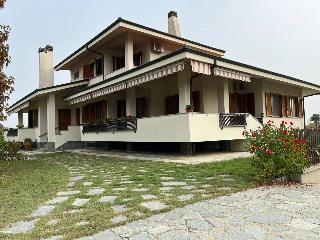 Nella zona residenziale sulle colline del Monferrato, alle porte di Refrancore, a 10 minuti da Asti in direzione Montemagno, prestigiosa villa che si sviluppa modernamente su un unico piano, articolata in due appartamenti, l'uno molto ampio e l'altro più piccolo, entrambi allegramente ariosi e vivibili con ogni comfort. La grande rimessa e il bel giardino - nel quale è agevole l'inserimento della piscina - completano la consistenza della proprietà, la cui posizione panoramica rassicurante e accessibile la rende adatta come prima casa di una famiglia giovane che desideri avere accanto i nonni.Villa suddivisa in due appartamenti Alloggio principale:Piano seminterrato: garage doppio, bagno, palestra, cantina, locale tecnico, disimpegno. Spazi comuni ai due appartamenti.Piano Rialzato: ingresso, soggiorno, cucina, tinello, tre camere da letto, bagno. Grande veranda che abbraccia la zona giorno.Piano Primo: due camere da letto, bagno e terrazzino.Alloggio più piccolo: Piano rialzato: Ingresso, soggiorno, tinello, cucina, due camere da letto, bagno.