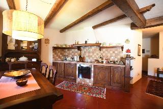 Il soggiorno con il camino e la cucina realizzata su misura, in muratura, rendono la zona giorno molto confortevole ed unica, con un balcone dal quale si gode un'ottima vista.
