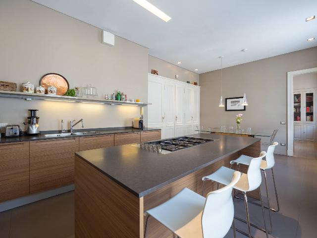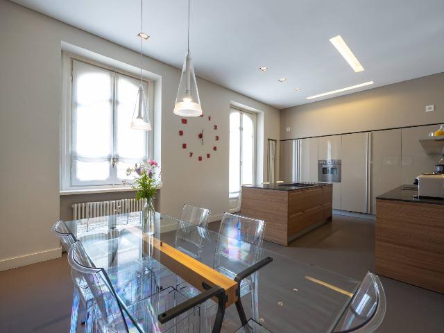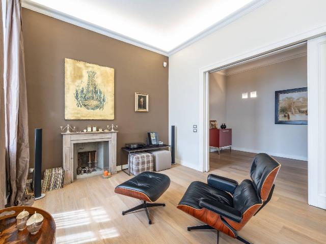 In splendido stabile d'epoca, in Via Lamarmora, nel tratto compreso tra Via Valeggio e Via Governolo, esclusivo appartamento al terzo piano con ascensore completamente ristrutturato composto da ingresso, luminosissimo salone doppio con bow window, cucina abitabile con isola e zona pranzo, tre camere molto ampie di cui una attualmente adibita a studio, una doppia con zona notte, cabina armadio e bagno privato e suite matrimoniale con bow window e vasca di design a vista, zona armadi, cabina armadio e bagno privato, terzo bagno ospiti tre bagni, lavanderia e ripostiglio e appendiabiti. Completa la proprietà una cantina e una soffitta. Categoria Catastale A/2.