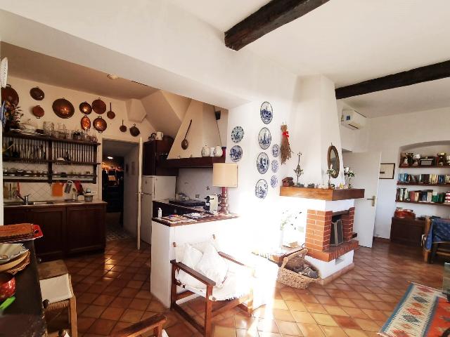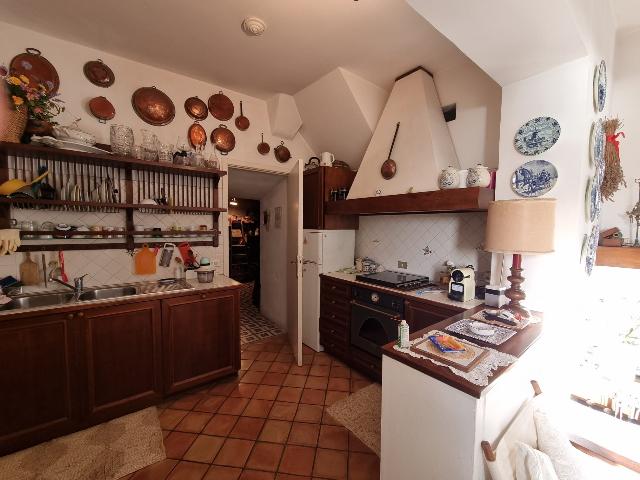 Al primo piano si trova la zona giorno composta da cucina aperta sul soggiorno e terrazzo panoramico, bagno e una tipica cantina con volta a botte in pietra.