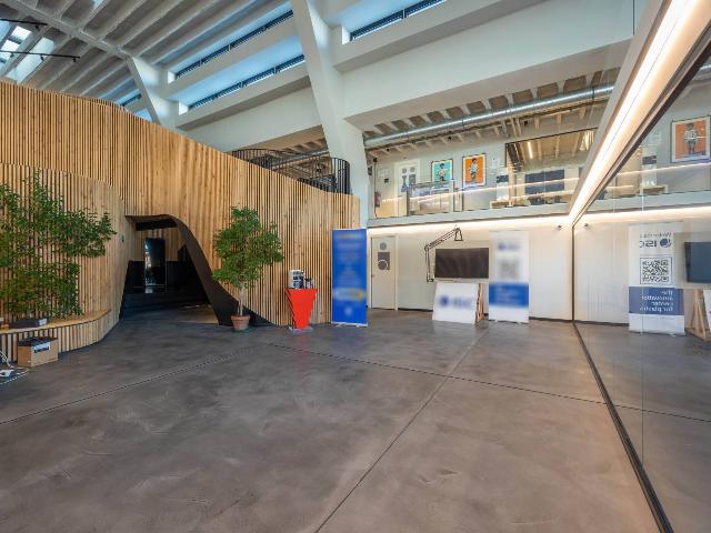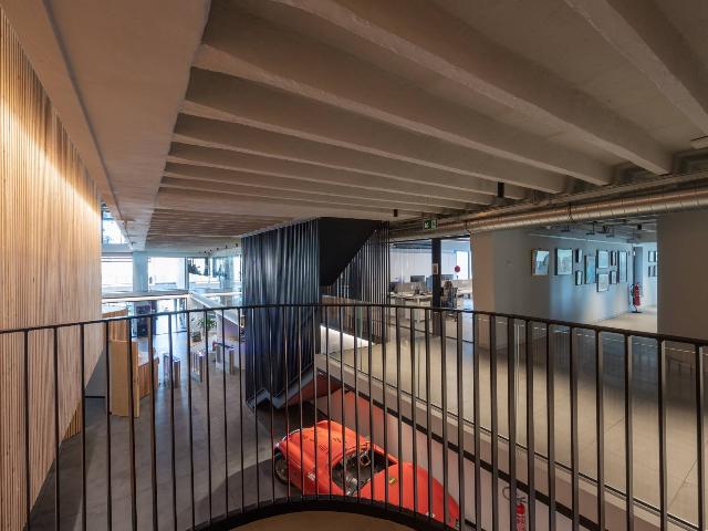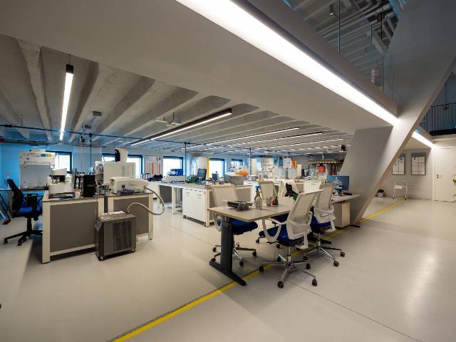 Capannone ad uso uffici adiacente al prossimo Green Campus di Mirafiori nei pressi dell'uscita “Corso Orbassano” della Tangenziale Sud e delle principali direttrici, quali Corso Orbassano e Corso Enrico Tazzoli.La proprietà internamente è così composta:- piano terra al quale si accede tramite una hall di ingresso, cinque sale riunioni, laboratorio meteorologico e prove tecniche, locali prototipi e magazzino.- primo e secondo piano interamente destinati ad uso ufficio dove sono presenti rispettivamente 26 e 13 uffici.- piano seminterrato con locale dedicato ad archivio cartaceo, locale refettorio, sala medica, servizi e locali tecnici.Il corpo centrale è realizzato come segue:- Telaio portante in KRH di abete certificato C24 con sezione dei montanti 60x160 mm disposti ad interasse di 625 mm; - Strato di controvento interno in pannello di OSB3 sp. 15mm; - Strato di controvento esterno in pannello di OSB3 sp. 15mm;- Pareti portanti perimetrali del piano terra e del piano primo con struttura eseguita a telaio in essenza di abete con montanti e traverse, posizionate secondo le normative strutturali lignee, completa di isolamento termico-acustico.L'intera struttura interna è rivestita con listelli di pino come decorazioni.L'intero microclima dell'edificio è dotato di impianti UTA (unità di trattamento aria) per la climatizzazione ed il riscaldamento invernale. Sulla superfice del tetto è presente un impianto fotovoltaico per la produzione di energia elettrica con potenza pari a 60 kW.