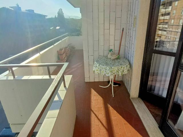 Luminoso e panoramico - 79 mq - 4° pianoIn zona residenziale, tranquilla e ben servita, comoda alla tangenziale e al centro di Rivoli, alloggio trilocale sito al 4° piano con ascensore, così strutturato:ingresso su soggiorno, cucina abitabile, bagno con finestra, camera matrimoniale, due balconi (uno dei quali verandato), rispostiglio.Cantina.Possibilità di acquisto di ampio box auto di mq 18 (€ 16.000).Porta blindata.Serramenti in legno con doppi vetri.Tapparelle elettriche.Impianto di condizionamento.L'appartamento, in buone condizioni interne, si trova in un condominio con ampia area verde comune e con l'ascensore che raggiunge comodamente il piano cantine e box.A livello condominiale è stata sostituita la caldaia dell'impianto di riscaldamento centralizzato, che è quindi nuova, e sono in corso di conclusione i lavori di rifacimento dell'impermeabilizzazione dei box.