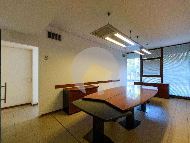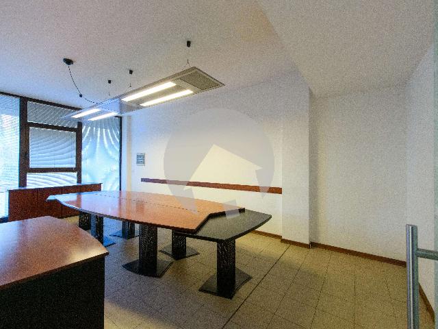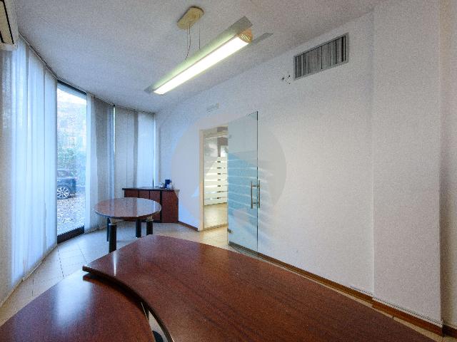Il locale è composto da una zona reception e vani ufficio per 12 postazioni di lavoro, servizio, magazzino al piano seminterrato, possibilità di parcheggio in cortile per due auto.