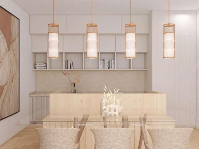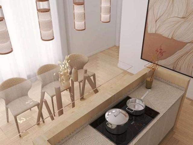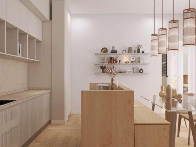 La zona giorno accoglie un ampio soggiorno e una cucina con isola centrale con accesso diretto al terrazzo di 43 mq, affacciato sul verde del parco Archeodromo del conero ,ideale per momenti di relax o cene all'aperto.