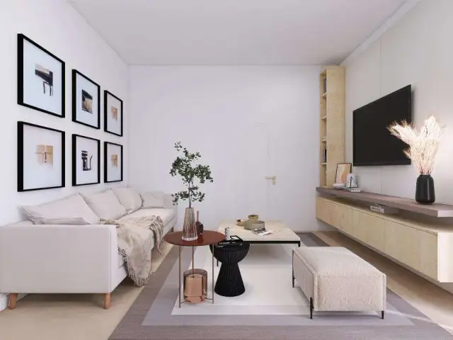 La proprietà è composta da un appartamento di 69 mq, un ampio balcone di 24 mq e un posto auto assegnato di 16,5 mq.