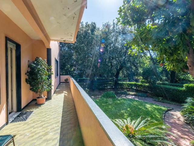 Internamente si compone di ingresso, luminosissimo salone doppio, sala da pranzo, cucina, 4 ampie camere, 3 bagni oltre a splendida balconata di 46 mq affacciata sul verde del giardino condominiale.