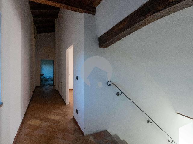 Vendesi meravigliosa porzione di casa, risalente al seicento e completamente ristrutturata nel 2005, così composta: al piano terra un ampio soggiorno con camino, cucina, bagno lavanderia, disimpegno, cantina. Al primo piano cucina, salotto con camino e soggiorno, ricavabile un'altra camera. Al secondo piano, con tetto i legno a vista ci sono due camere matrimoniali di cui una con bagno, e un altro bagno. Pavimenti in pregiato cotto vecchio, soffitti in assiti di rovere, affresco sulle scale a volte. Completano la proprietà una bella corte privata in sasso e un bosco privato con punto panoramico.