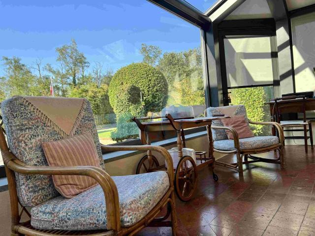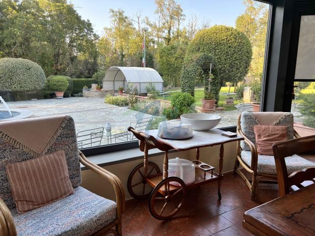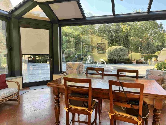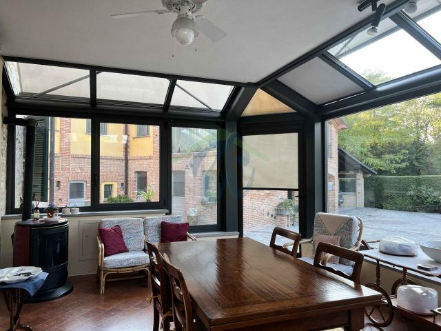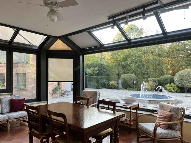 Il pezzo forte è rappresentato senza dubbio dal lato interno della casa. Qui, tramite elegante dehor completamente vetrato, potrai godere di una vista su ampio cortile piantumato con fontana scenografica.