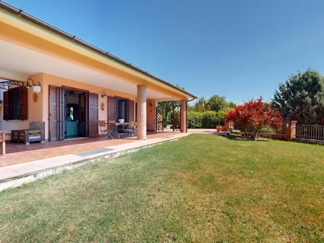 RIETI - SPINACCETO: Ci sono case che ci aiutano a cambiare il nostro stile di vita... A ridosso della strada provinciale in posizione facilmente accessibile, è disponibile una splendida Villa Unifamiliare protetta da un'ampia corte di proprietà di oltre 3.000 mq completamente recintata. La zona giorno dalle dimensioni raccolte presenta una cucina a vista e si affaccia su un comodo porticato dal quale si accede ad un meraviglioso terrazzamento a verde con vista sulla piana reatina. Questa parte della casa è completata da un bagno e da un vano di 65 mq con una cucina in muratura dove lo spazio è organizzato attorno ad un imponente forno a legna. La tipologia strutturale della casa consente di avere la zona notte separata da una sola rampa di scale rispetto al piano giorno, qui troviamo 3 camere da letto (di cui una matrimoniale e 2 singole) e un bagno. Eccellente la dotazione degli spazi accessori con un garage doppio, una ampia sala hobby di oltre 90 mq, una cantina di oltre 25 mq e al piano sottotetto un ulteriore locale con bagno. Contattaci quanto prima per prenotare il tuo appuntamento. Rif. T520