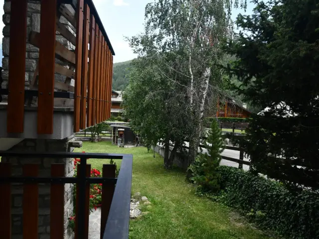 Lo stile montano caratterizza questa soluzione, da vivere anche negli spazi esterni, con ampio giardino ed area barbecue.