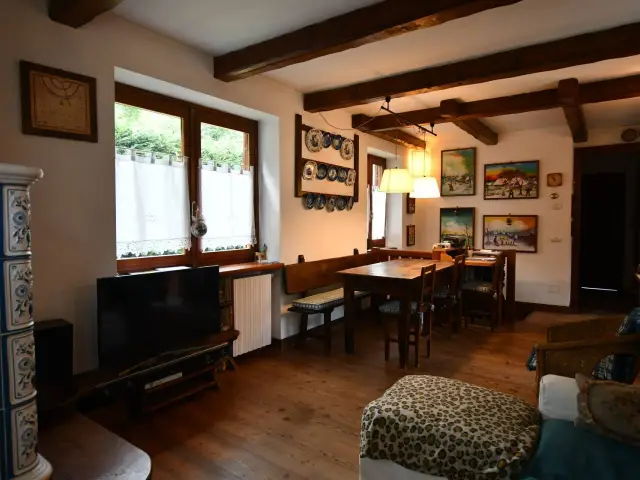 L'ingresso su soggiorno coplisce per la luminosità e la stufa della Thun che si impone e rende l'ambiente unico ed accolgliente; la cucina creata su misura, per soddisfare qualunque esigenza.
