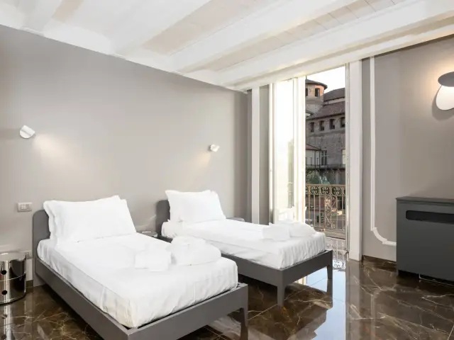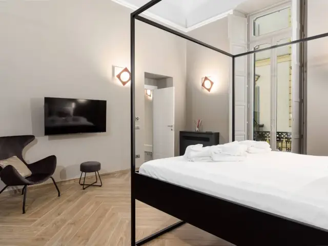 Al piano nobile di un palazzo d'epoca posizionato di fronte al Palazzo Madama, splendido appartamento appena ristrutturato con materiali e accessori di pregio e completamente arredato con mobili di design. Il lotto 3 è composto da ingresso, ampio salone di circa 60 mq con cucina a vista, due camere, due bagni, un ampio soppalco aperto sul salone, ad uso salotto tv, ed ha uno splendido affaccio su Palazzo Madama con un lungo balcone e un altro su Via Accademia delle Scienze con un balconcino. Lo stabile è dotato di portineria e di doppi ascensori. Riscaldamento e condizionamento autonomi. Totale accessibilità ai disabili