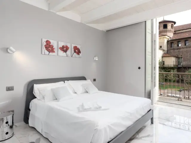 Al piano nobile di un palazzo d'epoca posizionato di fronte al Palazzo Madama, splendido appartamento appena ristrutturato con materiali e accessori di pregio e completamente arredato con mobili di design. Il lotto 6 è composto da ampio ingresso, cucina, ampio soggiorno, camera, bagno con antibagno, un soppalco aperto sul salone, ad uso cameretta con un letto singolo, ed ha uno splendido affaccio su Palazzo Madama con un lungo balcone. Lo stabile è dotato di portineria e di doppi ascensori. Riscaldamento e condizionamento autonomi. Totale accessibilità ai disabili
