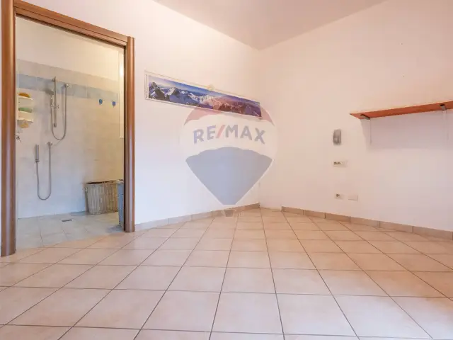 Il piano terra è caratterizzato da un suggestivo soggiorno con camino, perfetto per le serate invernali, e da una cucina abitabile luminosa. Un locale con terrazzo coperto offre un'area esterna godibile, indipendentemente dalle condizioni meteo.