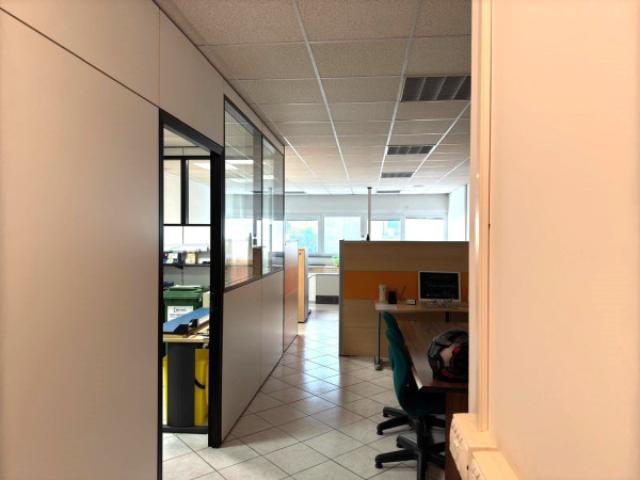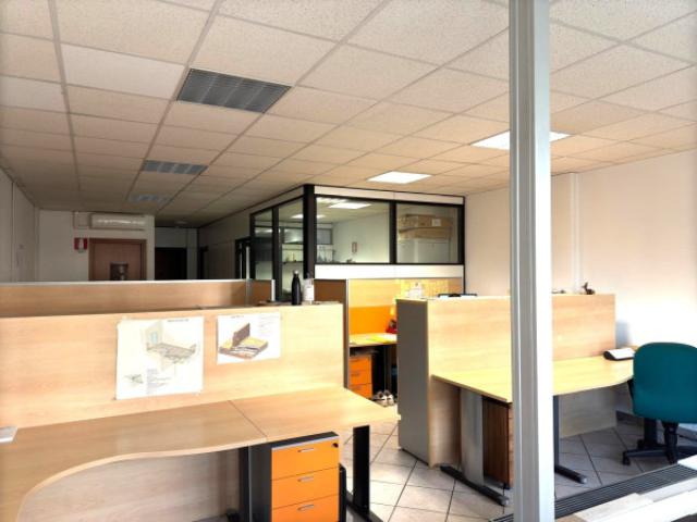 In zona commerciale ad alta densità di uffici, proponiamo in vendita un ampio ufficio di circa 100 mq, attualmente adibito a studio tecnico per geometri e architetti. L'immobile è situato al primo piano di un edificio servito da ascensore e si compone di un ingresso, sei postazioni di lavoro, una zona riunione, sala per server, archivio e bagno con antibagno. La proprietà viene venduta completa di arredi e attrezzature tecniche, pronto per un utilizzo immediato. La zona è particolarmente strategica, caratterizzata da un'elevata frequentazione e comoda accessibilità, ideale per garantire massima visibilità e praticità per clienti e collaboratori. A completare un posto auto condominiale riservato. POSSIBILITA' DI CAMBIO DESTINAZIONE D'USO IN ABITATIVO.