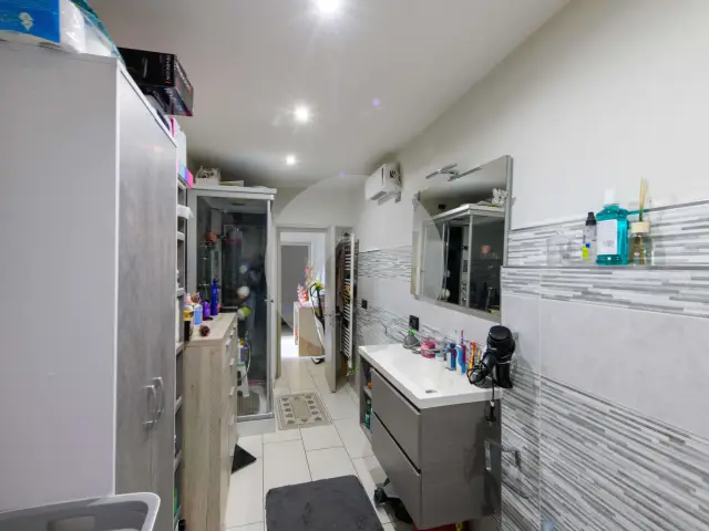 Ingresso indipendente da giardino privato pavimentato, dal quale si accede tramite scalinata al primo piano, dove troviamo un ingresso su disimpegno, cucina abitabile separata, soggiorno, camera da letto e bagno.