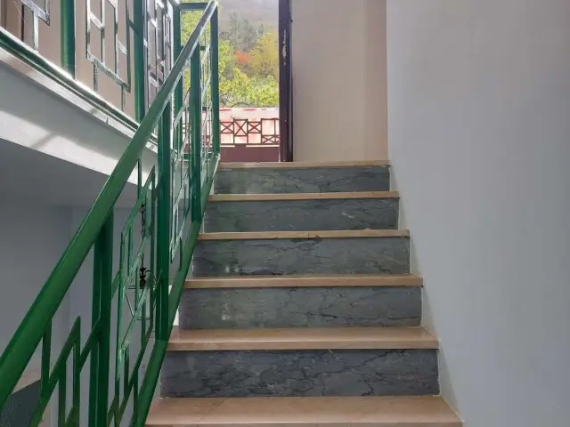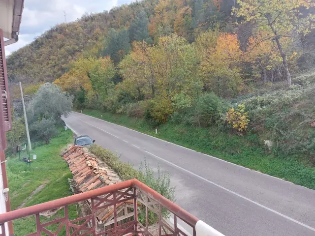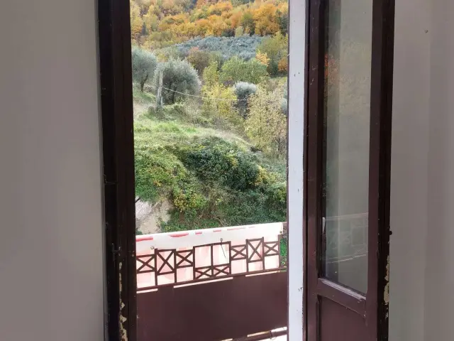 Dall'ingresso comune posto sulla corte esterna prospiciente alla strada statale, una scala interna in marmo conduce al primo piano dove si trova l'unità posta in vendita che si apre con un luminosissimo ballatoio, dotato di balconata con affaccio sulla strada principale e dove è presente il locale bagno, interamente da ristrutturare; ai lati del pianerottolo si affacciano le due ampie camere da letto con finestra.