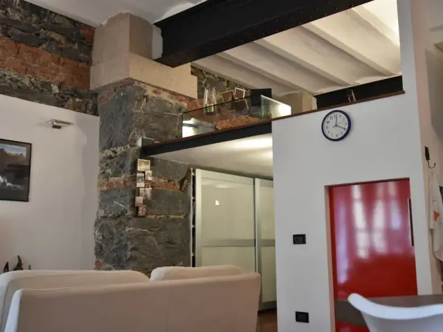 E' composto da grande zona giorno con attrezzatissima cucina a vista, elegante soppalco con letto matrimoniale, ampia cabina armadio, bagno con anti-bagno, diverse armadiature a muro. Ottima suddivisione senza spazi.