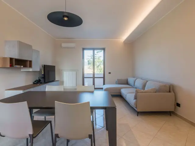 L'ingresso openspace, luminoso e accogliente, si affaccia su un balcone.