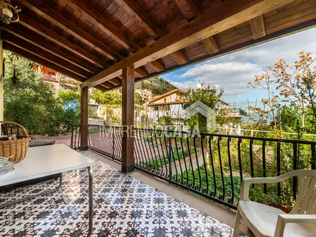 Il primo piano mansardato offre uno spazioso salone, un comodo disimpegno, una cucina, una camera da letto, un bagno e un favoloso Terrazzo coperto di 23 mq, anch’esso con una vista panoramica che permette di ammirare il mare e le colline circostanti.