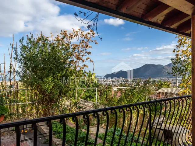 Al piano terra, troviamo un accogliente ingresso su disimpegno che conduce a un ampio salone doppio, una cucina abitabile, una camera da letto, una cameretta, un bagno, e un balcone Terrazzato con una magnifica vista sul Golfo di Palermo, regalando scenari mozzafiato e un'atmosfera unica.
