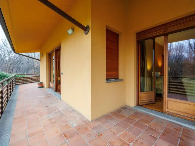 Nel prestigioso parco de La Mandria, nella zona residenziale, appartamento angolare al primo e ultimo piano all'interno di una villa immersa nel verde, composto da ingresso, ampio salone, cucina con sala da pranzo, due camere, studio, 3 bagni, ripostiglio, disimpegno con armadiate su misura, un ampio terrazzo godibile circonda l'appartamento.