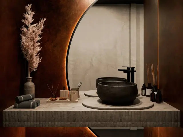 al piano -1 , collegato da una scala, una cabina armadi ed una ampia zona Spa, con doccia, vasca, sauna e zona relax.