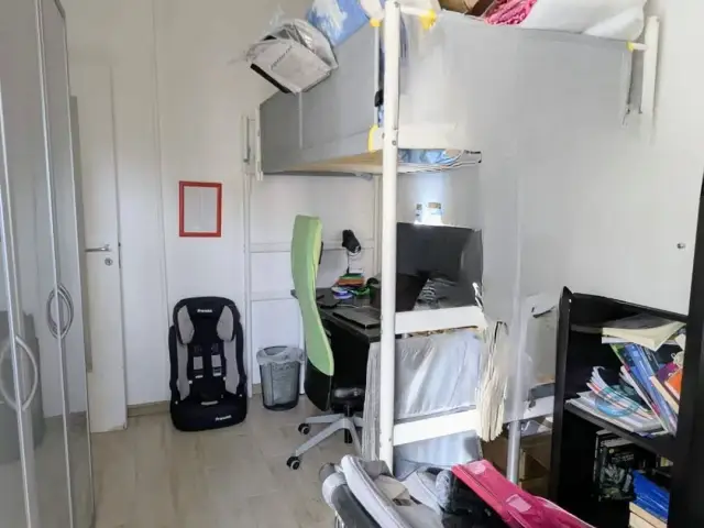 L’appartamento, posto al quarto piano di un elegante stabile di cinque livelli, si distingue per la sua luminosità e la disposizione funzionale degli spazi. L’ingresso in disimpegno conduce direttamente alla zona living con cucina a vista, un ambiente confortevole e ben organizzato, perfetto per momenti di convivialità. La zona notte si compone di una camera matrimoniale, una cameretta ideale per bambini o per chi necessita di uno studio, e un bagno moderno.