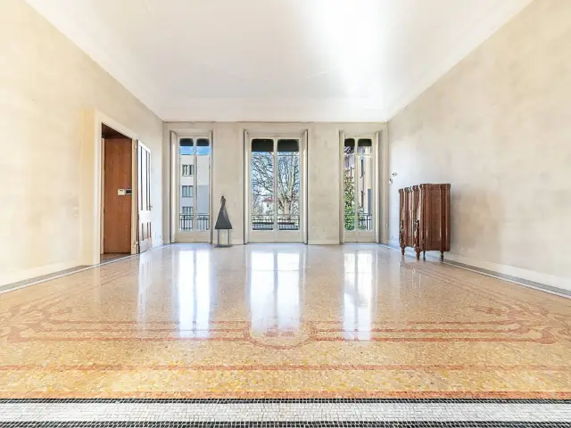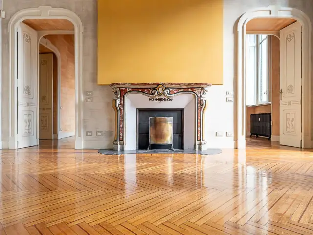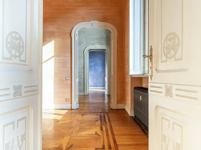 Riscaldamento centralizzato con termovalvole collegato al teleriscaldamento, impianto di condizionamento, impianto di antifurto, serramenti in legno con doppio vetro, tapparelle elettriche, pavimenti in splendido parquet, marmi e seminato con decori originali, porta blindata, armadiate su misura, l'appartamento gode di tripla esposizione, soffitti decorati con altezza di 4.60 m