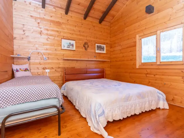 Il primo piano è dedicato al resto della zona notte, con una terza camera matrimoniale dotata di balcone privato affacciato sul bosco, una camera doppia perfetta per i bambini o gli ospiti ed un ulteriore bagno finestrato.