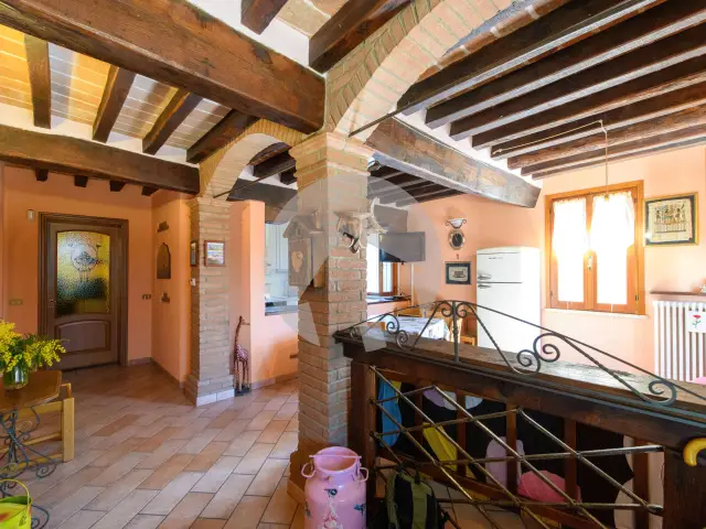 Salendo al piano primo troviamo un ampio corridoio che conduce a quattro camere e un bagno. A questo piano è possibile ricavare un'ulteriore cucina, già presente con gli impianti, al fine di creare una seconda unità abiativa.