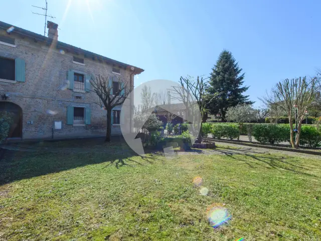 Correggio, Via Monache: si propone in vendita villa abbinata di ampie dimensioni ristrutturata a fine anni '90 e nel 2011 con giardino privato di oltre 1.500 mq, doppia autorimessa con cantina in corpo staccato e fabbricato staccato ad ex uso agricolo da ristrutturare e con possibile riqualificazione in abitativo.