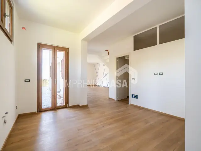 Internamente, la villa è così composta: una ampia zona living con cucina e soggiorno open space, tre camere da letto eleganti e spaziose, un ulteriore locale polifunzionale ideale per essere adibito a studio o sala hobby, un comodo ripostiglio e tre bagni finemente rifiniti. La pavimentazione in cotto e il parquet conferiscono calore e raffinatezza agli ambienti, mentre il sistema di riscaldamento e climatizzazione autonomi assicura il massimo del comfort in ogni stagione. Inoltre, la villa è dotata di una porta blindata per una maggiore sicurezza, e di due posti auto scoperti.