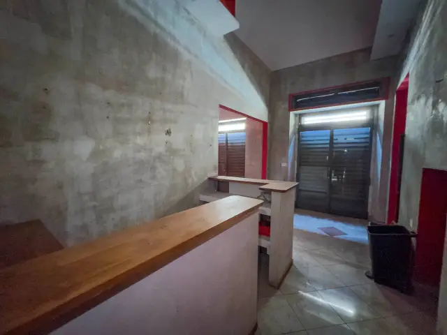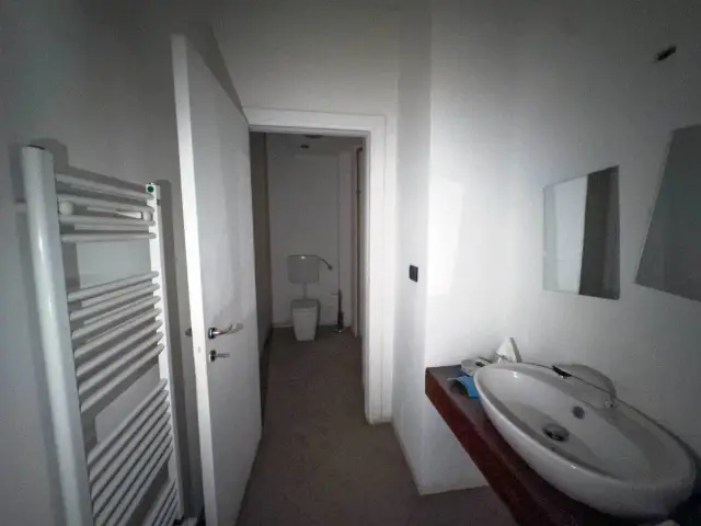 Triplo ingresso di cui due su strada e uno dal vano condominiale, sei locali, tre bagni con antibagni e area deposito.