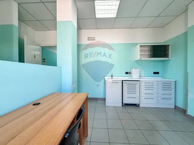 L'immobile è così composto: accedendo troviamo una luminosa reception/sala d'aspetto con balcone (che potrebbe diventare una confortevole zona giorno). Un corridoio conduce nella zona ambulatori e sale dentistiche con 2 bagni di servizio e terrazzo (potrebbe essere convertita in zona notte con due camere e due bagni).