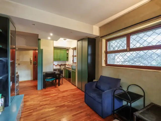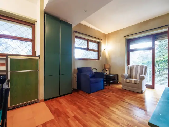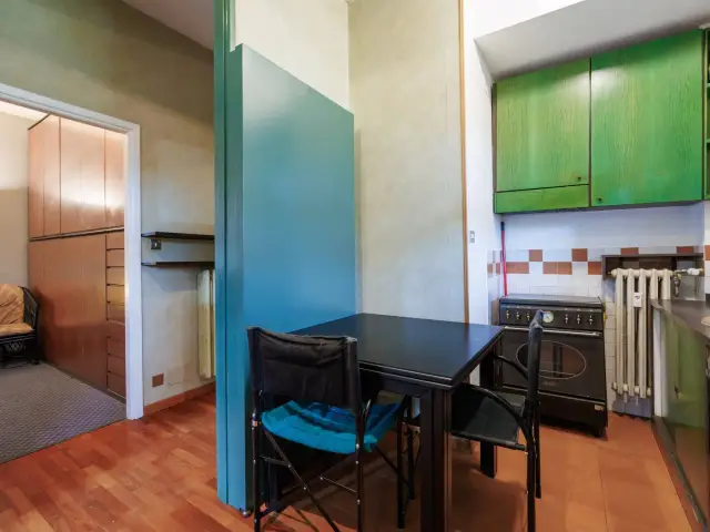 L' alloggio si presenta in buone condizioni, dotato di riscaldamento centralizzato e di infissi in legno e vetro doppio.