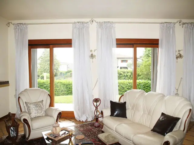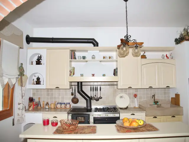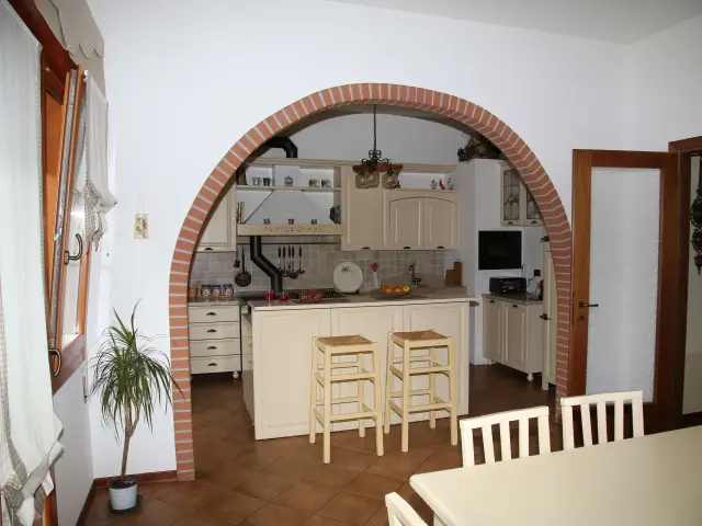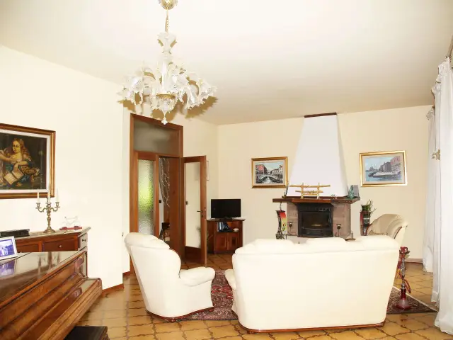L'abitazione, in stile anni '70, si sviluppa su piani sfalsati con una razionale suddivisione degli spazi. La zona giorno, esposta a sud/est e affacciata sul giardino tramite grandi vetrate, è composta da un generoso ingresso, un salone di circa 40 mq con caminetto, zona pranzo e cucina a vista. Un ambiente accogliente e perfetto per la convivialità.
