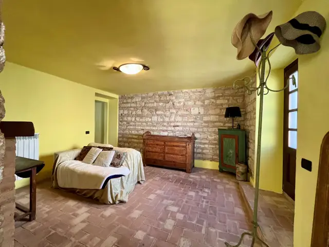 L'immobile presente delle parti con pietre del Conero a vista, un elemento che ne esalta l'aspetto rustico ed elegante. A completare la proprietà, un portico e un giardino privato offrono uno spazio aggiuntivo, mentre una zona separata può essere utilizzata come ripostiglio e serve anche come passaggio esterno che collega i due spazi esterni.