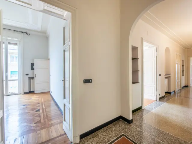 Carbonara alta (Spianata Castelletto), in elegante palazzo d'epoca, vendiamo soleggiatissimo appartamento esposto a Sud di 250 metri quadrati posti ad un piano alto con 6 balconi. L'immobile è suddiviso in: ampio ingresso con ripostiglio, grande salone doppio con balconi, 4 ampie camere da letto con cabine armadi, una stanza adibita a lavanderia, una grandissima cucina con balcone, 2 bagni. L'appartamento si presenta in ottime condizioni, con rifiniture di pregio, soffitti decorati con stucchi, pavimenti in pregiata graniglia genovese e parquet originali e impianto di aria condizionata. Il condominio d'epoca è in perfetto stato e dotato di efficiente servizio di portineria. Comodo a tutti i mezzi e i servizi della zona. Completa la proprietà una comoda cantina. Riscaldamento autonomo.