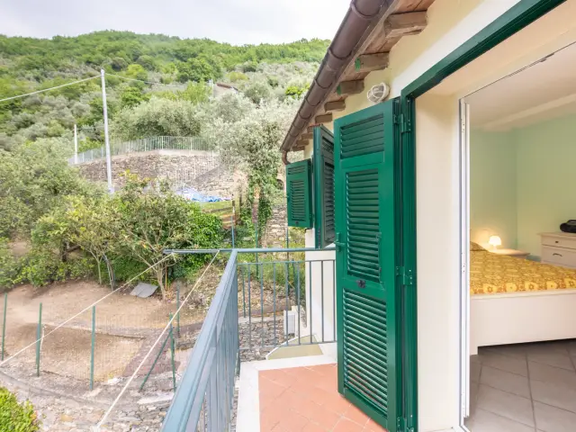 Il primo piano, collegato da scala interna, è adibito a zona notte composto da camera da letto matrimoniale, con balcone e bagno finestrato con doccia.