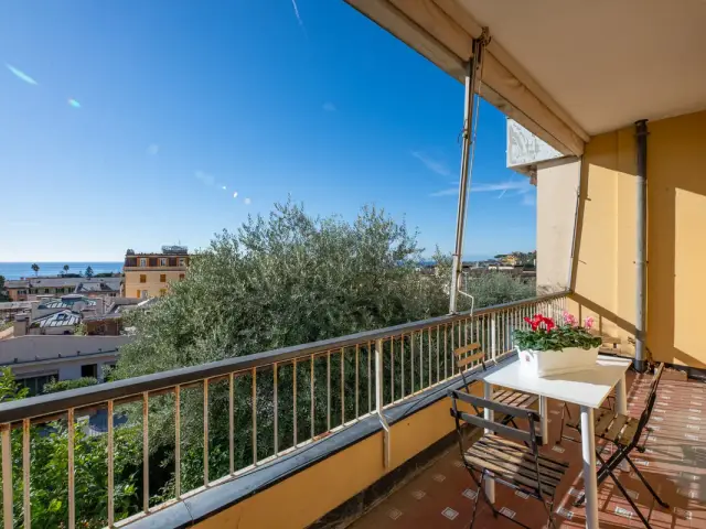 In complesso privato a Nervi, proponiamo luminoso appartamento di 120 mq, con terrazzo esposto a sud di 9 mq., e giardino privato di 33 mq a nord.