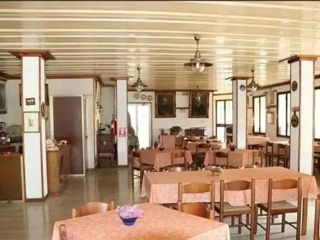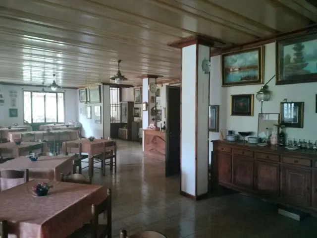 Dal viale di accesso alla proprietà, che si diparte, con cancello privato, dalla provinciale per Rocchetta-Nervina, si giunge ad un grande cortile con ampia scalinata che conduce al piano terra; qui troviamo un vasto locale fino a qualche anno fa adibito a ristorante, una cucina arredata con i macchinari per la ristorazione ed un locale di servizio, oltre due vani bagno ad uso della clientela.