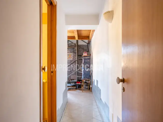 Al primo livello troviamo un ingresso su ampio disimpegno, una comoda cucina abitabile con balcone che affaccia sul prospetto principale, un salotto luminoso e un primo bagno.