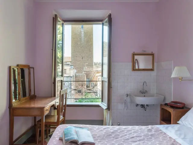 Le camere sono luminose, recentemente rinnovate, con pavimenti in parquet o piastrelle storiche, arredate con mobili d'epoca e dettagli di pregio. L'atmosfera è raffinata, autentica e silenziosa, in perfetta armonia con il contesto architettonico e culturale della città.