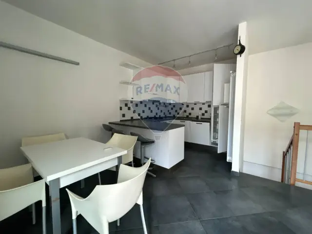 - piano primo accessibile tramite scala interna, si entra direttamente sul soggiorno aperto e ben illuminato, procedendo sulla destra troviamo la cucina a vista con la penisola e l' affaccio diretto sul terrazzo di discreta metratura che permette di godere di una piacevole vista e di trascorrere momenti di relax all'aperto, mentre sulla sinistra si trova il bagno ed una zona dove poter creare la camera da letto.