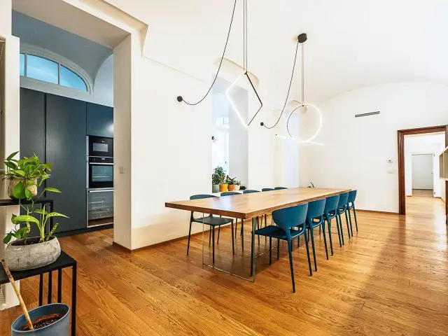 Serramenti in legno con doppio vetro, pavimenti in parquet rovere spazzolato, impianto di antifurto volumetrico e perimetrale, impianto di condizionamento canalizzato, riscaldamento centralizzato con termovalvole, luci a led dimmerabili nella zona giorno, porte originali d'epoca in noce e porte filo muro nella zona notte, insonorizzazione pareti confinanti, inoltre sono presenti numerose armadiate su misura per ottimizzare gli spazi.