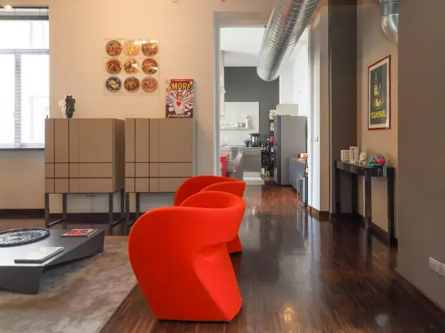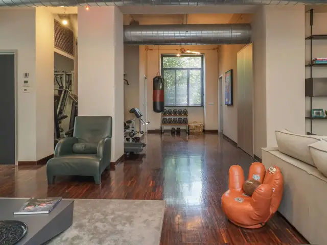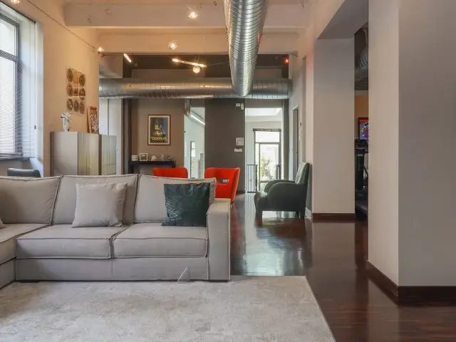 Il loft, posto al primo piano, è caratterizzato da ampi spazi ed è stato realizzato prestando grande cura ad ogni dettaglio, conciliando sapientemente lo stile industriale con l'eleganza del design contemporaneo. I grandi volumi e le ampie vetrate conferiscono agli ambienti estrema luminosità.