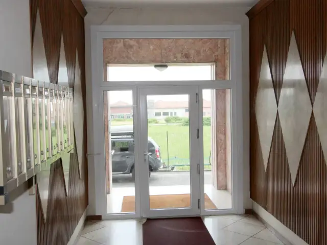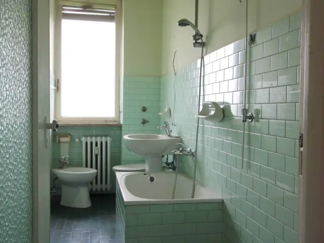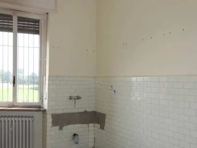 L'appartamento è esposto a Sud e affaccia su un'area prativa. Non ha balconi ed ha un'unica aria fronte strada. Si presenta allo stato originale, i serramenti originali sono in ferro e vetro, il riscaldamento è centralizzato con termovalvole