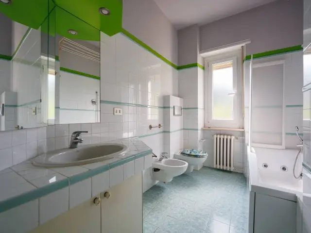 L'appartamento vanta anche due balconi, uno dei quali angolare, che offrono una vista aperta e la possibilità di godere di momenti all'aria aperta. A completare la proprietà, un garage privato e una cantina, ideali per offrire ulteriore spazio.