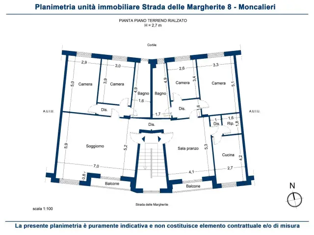 In piccola palazzina posizionata sulla precollina di Moncalieri, proponiamo appartamento in buone condizioni composto da: doppi ingressi salone, soggiorno cucina quattro camere da letto doppi servizi e ripostiglio.